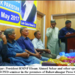 The leadership of political leaders, representatives of minorities and civil society organizations also attended this event. President RMNP Ehsan Ahmed Sehar tabled another resolution which was unanimously approved demanding government to update Director General UNESCO about the judicial status of the murdered Pakistani journalists on regular basis. He also demanded of government to appoint special public prosecutors at federal and provincial levels for pursuing journalist’s cases and underlined the need to implement the existing law to stop the sexual harassment of female journalists at their working places. It was also recommended that government should compensate widows of all murdered journalists without further delay. WPFD Seminar participants also suggested government to engage all sections of media and civil society for consultation before legislation as not a single recommendation of the Ahsan Iqbal committee is included in the government proposed Safety, Security and Welfare of Journalists Bill. It was observed that in the current bill there is nothing about prosecution and protection of the journalists.