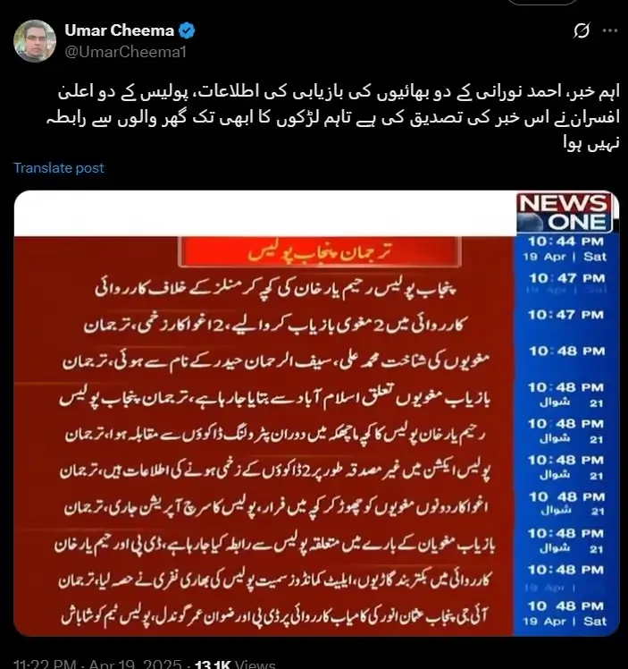 ISLAMABAD – Two brothers of Pakistani journalist Ahmed Noorani have reportedly been located, an Islamabad based journalist claimed, quoting senior police officers.