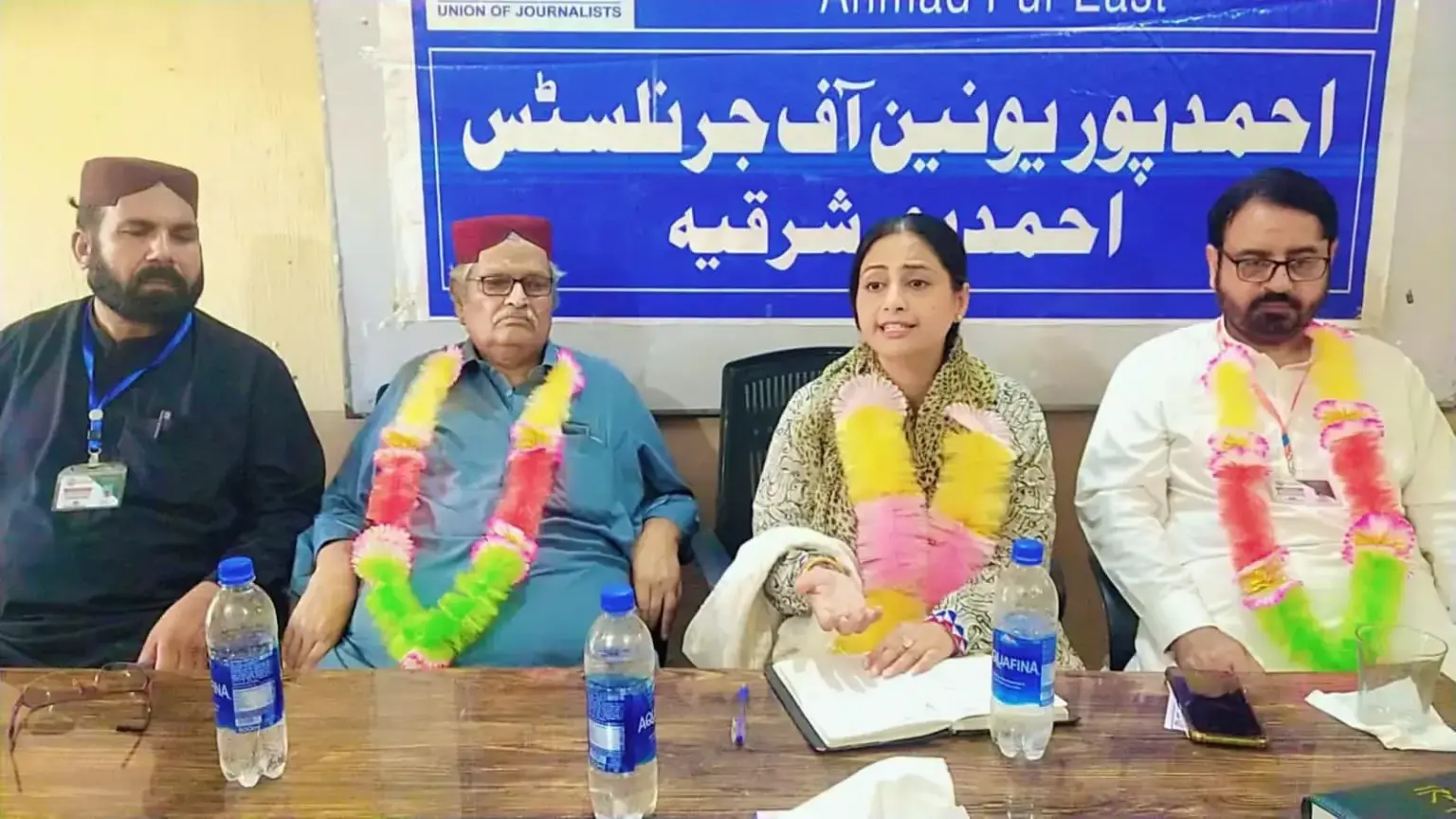 Dr. Sadia Kamal, the central president of the Pakistan Federal Union of Journalists, announced the affiliation of Ahmedpur Union of Journalists Ahmedpur Sharqia with PFUJ workers at the request of the founder of AUJ, which was welcomed by the union members with applause and desk replacements.